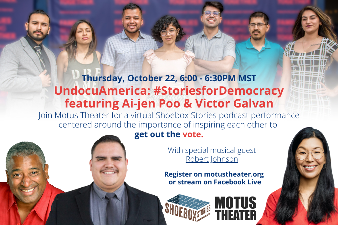 October 5th - 30th, Motus Theater and like-minded partner organizations and people are hosting #storiesfordemocracy. The campaign will share excerpts from Motus Theater’s Shoebox Stories Podcast: UndocuAmerica Series in which prominent Americans model civic hospitality by stepping into the shoes of undocumented people caught in the crosshairs of U.S. immigration policy. By suspending judgement and reading and reflecting upon their stories aloud, the readers uplift the humanity of undocumented people and interrupt the anti-immigrant narrative used to justify inhumane immigration policies.
